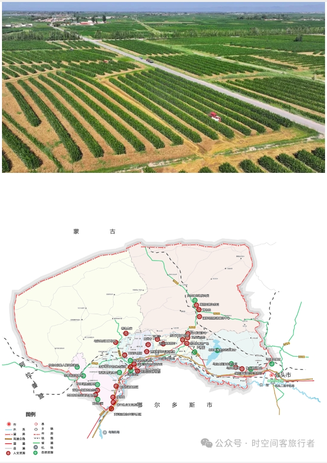 河套平原:黄河奔腾而过,母亲河黄河在此勾勒出独特的 “河套” 画卷。黄河几字弯的至北拐点,“黄河百害· 唯富一套”,这一世界唯一的自然地理现象,孕育出灌溉农业的丰饶盛景,使其成为塞上粮仓,黄河文化、水利文化源远流长,在农业、文化、旅游多领域深植品牌基因,开启巴彦淖尔走向世界的特色资源整合发展新篇。