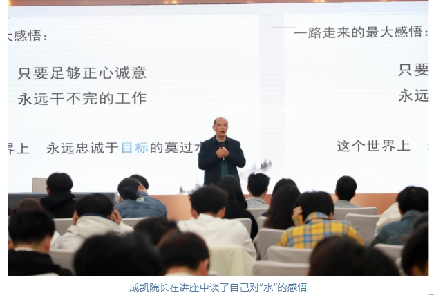 在第38届“中国水周”期间,3月25日,本院院长成凯,在毕业37年后应邀回到母校,为师生们带来了一场名为《水文化》的专题讲座,这是一场跨越漫长岁月的精神交流。