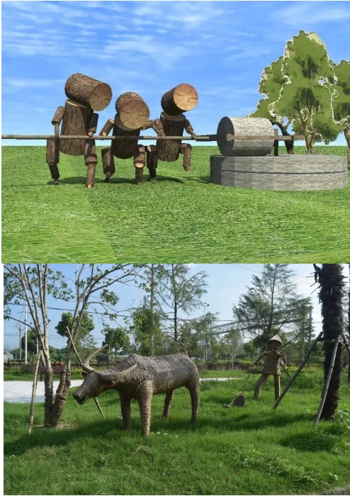 了解当地地域文化时,应该着重了解当地的农耕文化、手工业文化、物质文化遗产和非物质文化遗产。在全面了解乡土生态环境和地域文化的基础上,全面挖掘生产性景观要素。原本风光无限的乡村景观进行保护和保留,可套种高大的开花植物或者有色叶植物,增加艺术装置烘托田园风光的意境。