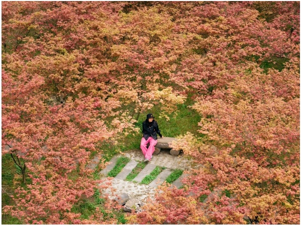 在大家的印象中,枫叶似乎是秋季限定的美好。其实,春天也可以看红枫。每到春季,在乌当区枫叶谷旅游度假区,2万多株红枫将那抹浓郁的璀璨在山谷盛放。这里的红枫主要以中国红枫和日本红枫为主,无论是远眺还是近看,都是美爆了的存在。