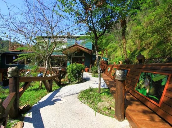 在桃米村,你可以漫步在桃米坑溪滨步道,沿途种满了淡紫色的马鞍藤,景致宜人。村中有许多民宿可供入住,白天可以预约民宿主人进行生态解说,夜晚可以享受青蛙合鸣的热闹。或者也可以到邻近的颜氏牧场清晨观雾听雨、夜晚赏茶望月。
